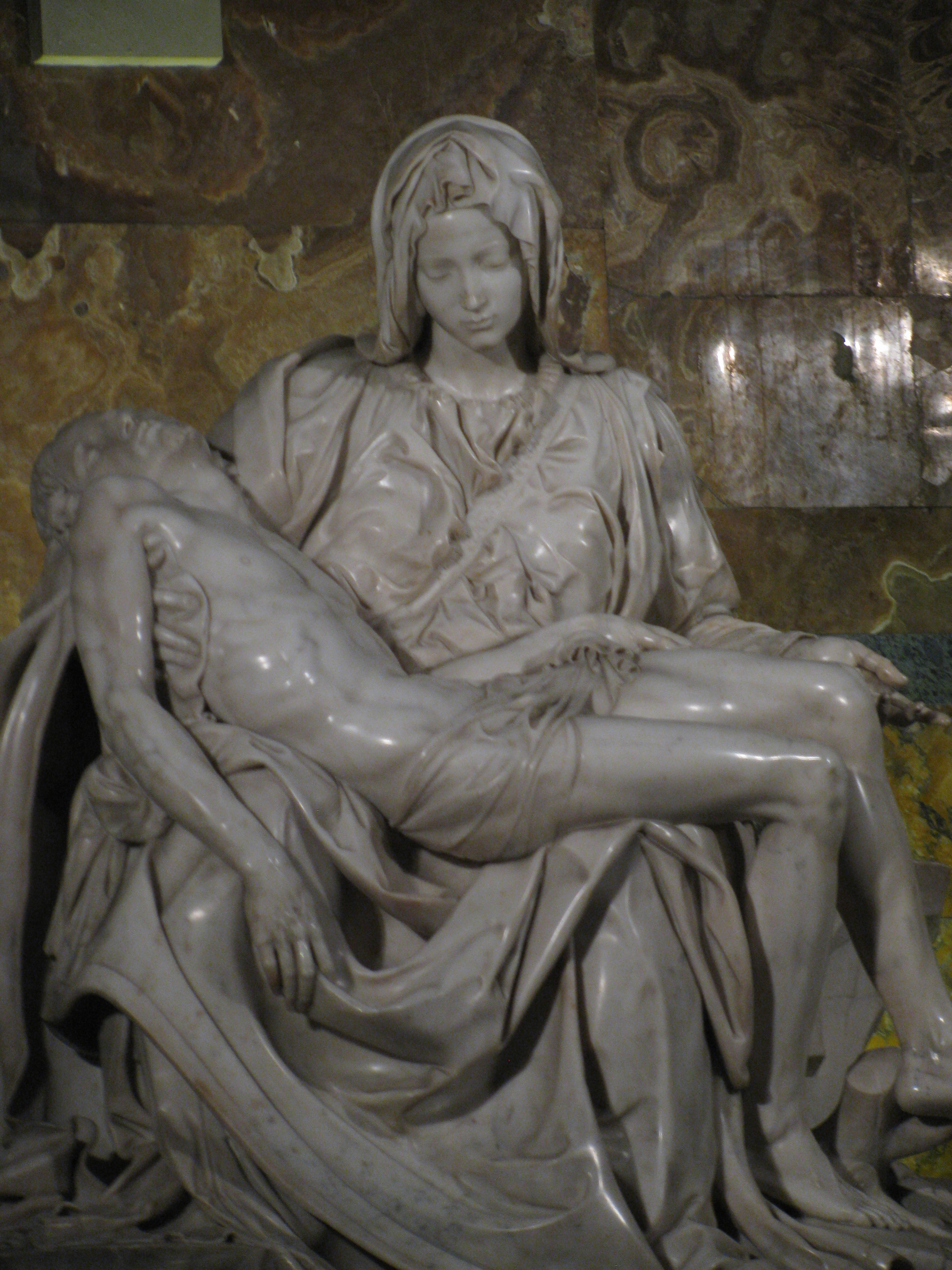 and also at Michelangelo’s 1st Pietà in St. Peter’s Basilica in the Vatican.