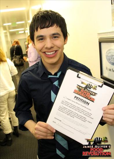 David with a Jamie Oliver "Food Revolution" Petition ... can you Imagine those two together for a show? Blimey! (TwitPic: @MakisTrippy)