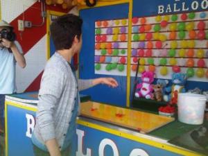 [EXT., ARCADE BALLOON GAME, NIGHT]