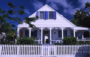 As the sun sets over a sleepy subdivision in Everytown, U.S.A., the camera pans along a row of small bungalows, stopping at one with a white picket fence and a bicycle and scooter leaning against the front porch.
