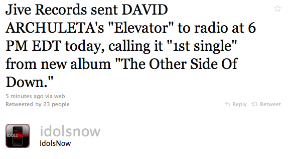 PS love the tag. “David Archuleta can have any first single he wants.”