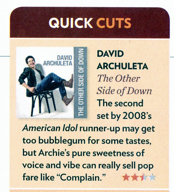 The Stanford Daily:  Lists them all, “…all Archuleta really needs to sell his music is his angelic voice.”