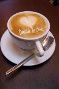 Have quite a bit of David merchandise but the only thing I use regularly that is emblazoned with David’s face is a mug that a friend of mine made me, for my Birthday (very sweet). Have a couple of David Tees that I wear at home though. 🙂