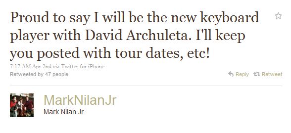 Excuse my drive-by post but must spread the news (really hoping it’s all true/accurate/real!) Courtesy of Somethingaboutarchie http://www.somethingboutarchie.com/2011/04/touring.html?spref=tw Assuming Mark Nilan Jr. is referring specifically to David, which I think he is. *thud*