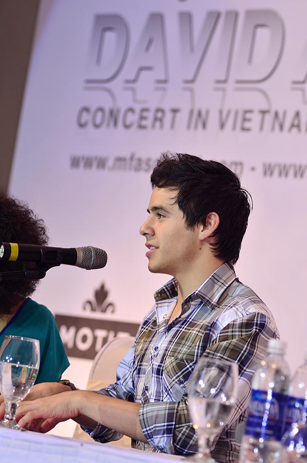 Appeared in Vietnam in nearly 18h on 21 / 7 and at 20 hours the same day,David Archuleta has participated in the launch press conference in HCMCVietnam. Friendliness is the first impression and the most remarkable 21-year-old singer on America. “I found quite surprising and interesting with thewelcoming of the fan frenzy at the airport, thanks everyone.” David openedthe press conference.