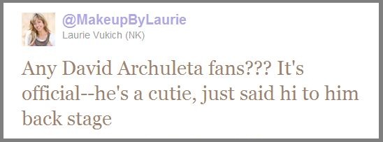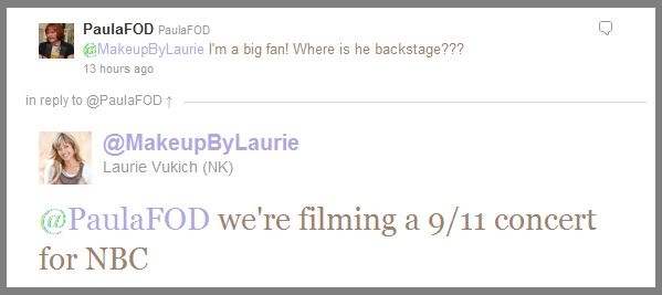 acckkkkkkk, check out the end of the post above for a Twitter convo from last night between some fans and a makeup artist who says she saw David backstage at a taping for an NBC 9/11 concert *flails* … please let him be singing!!!!!