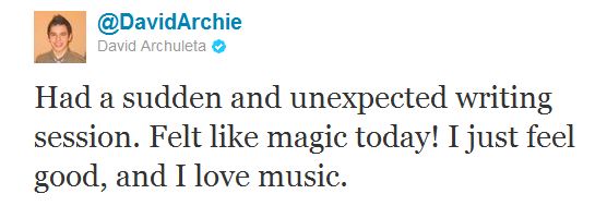 I’m adding D’s last tweet to the top of the Tour-re-lu-re-louuuuuurrr!!!! post because THIS is what it’s all about for me, guys. THIS, THIS, THIS!!!! Only David could choke me up and plaster a huge silly grin on my face with 92ish little characters. His joy for creating new music and sharing it with us pops right off the Twitter screen. I don’t care what anyone says, he’s where he’s supposed to be, doing what he’s meant to do and giving us all that he can give … MKOC Tour can’t come fast enough pour moi!!!!!