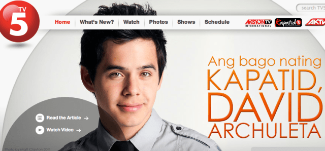 “Archuleta’s joining TV5 comes from left field, however. The signing of an international star of Archuleta’s youth and talent, arguably in his prime, is bound to shake up the Philippine entertainment industry.” Full news story HERE.