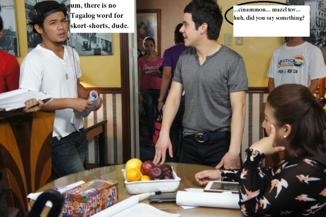 Perfect, TOFan. Made my morning. (And if we need someone to translate the actual airing of Nandito Ako, we know where to find you.) (Plus, I wouldn’t mind if you’d take a stab at interpreting MyDearWriter’s tweets.)