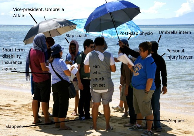 18. Hmmm the one labelled as “fan who snuck on set” in the first picture could Direk Mac Alejandre, lolol! I would be more suspicious of the dude in red on the left with the scarf round his head, what a shady looking character, hahaha!