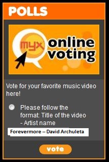All you need to do is register on MYXph.com, log in, and type in Forevermore – David Archuleta in the MYX Online Voting Box at the upper right hand corner of the MYXph.com home page.