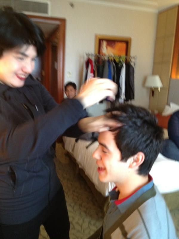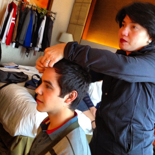 Take ‘work’ home hahahahaha. Hard duty, wow. btw, I am a fan of the Pin Antonio cockatiel crest on David’s hair.
