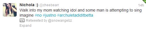 I actually totally forgot that I remember thinking the exact same thing… ‘cuz when Randy asked it, I expected the question to throw David off … and then he proceeded to give such an amazing answer. Also, after he sang Another Day in Paradise and Simon said something like “you can’t keep singing these depressing songs” and David shot back with “You think Imagine is depressing??” *snap* 🙂