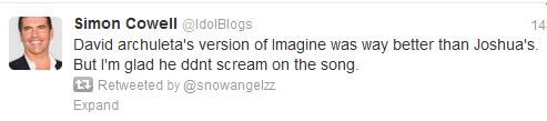 i believe SImom Cowell’s opinion.. i believe every Archie’s opinion… and i believe them coz i have the very same sentiment — nothing compares to David’s iconic version of Imagine. PERIOD. 🙂