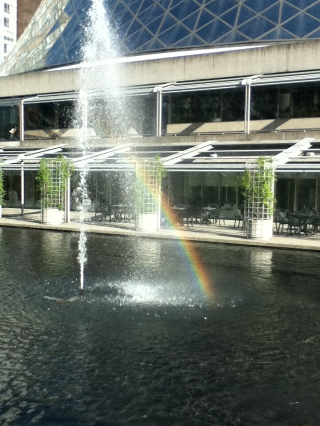 Listening to D.’s music doesn’t help, of course. While playing “Rainbow” on my iPod one day, I thought about his note to his Nandito Ako driver, thanking him for playing the song so much. I swear, as soon as I heard “there’s a rainbow always after the rain,” I turned and saw this fountain: