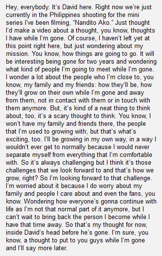 Had a thought in my head that I wanted to share with you all while in the Philippines filming Nandito Ako about my future while I am gone on my mission.