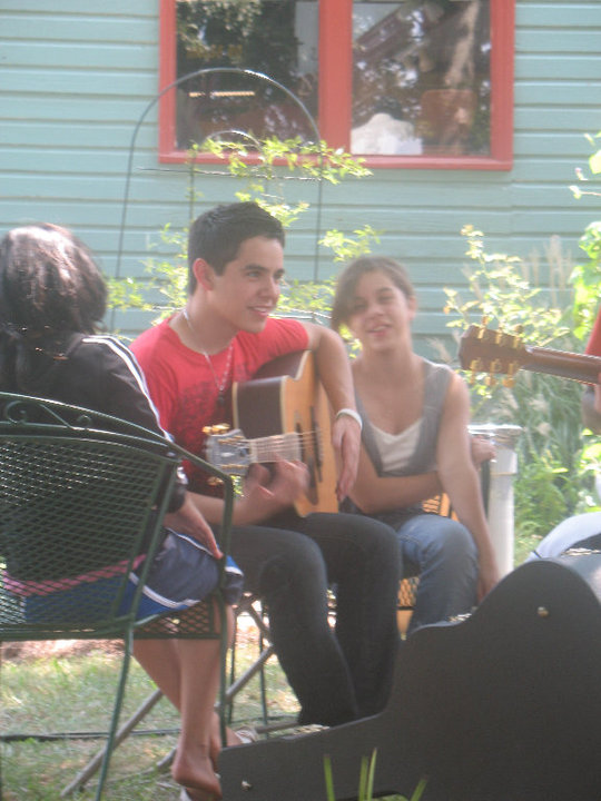 Great post TOfan. Your captions are always the best! Aw, David and guitar, nice. Have a feeling we will see him strumming on stage at some point (and probably beating on those drums again)! I can easily imagine David sitting on a stool on stage, strumming a guitar and singing his heart out. 🙂