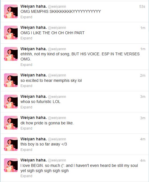 Love all of Weiyan’s tweets about BEGIN.!! Luckily I wasn’t on twitter when I heard it for the 1st time or else I would have ended up in twitter jail too! It is such a great album and hearing it is just so AMAZING!!! Love every song on BEGIN. but there is something about Broken that makes it so special!!
