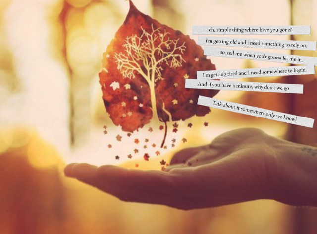 Archugeezer: 2:32-2:53 (“So tell me when, you’re gonna let me in, I’m getting tired and I need somewhere to BEGIN. And if you have a minute why don’t we go, talk about it somewhere only WE know.”)