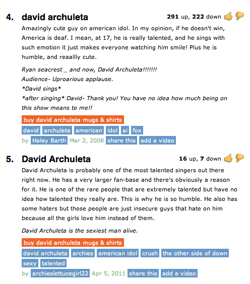 I’ve seen a couple of David definitions from Urban Dictionary pop up on Twitter lately so I checked out a few other possible “Davidisms” and here’s what I found (my personal favourite: “If he doesn’t win, America is deaf.”) 😆