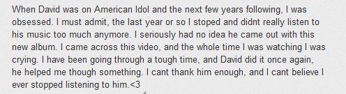 “David’s voice is love” oh yes!