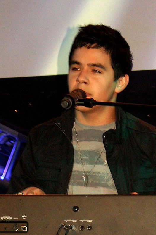 Then they showed the montage of the David’s from finale night and the Ford guy FINALLY asked us to, “Please give a warm welcome to your American Idol runner up and Ford Escape Hybrid Owner, David Archuleta!” Lots of cheers. David waves to the crowd and sits down at the keyboard. He asked how we were all doing tonight. Um it was about 12:45 in the afternoon David. 🙂 He says, “We’re really happy to be here. It’s just been a fun day so far.”