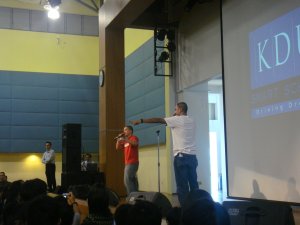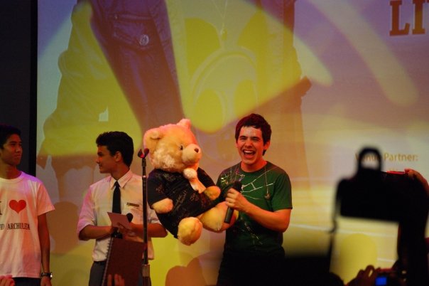 They said that they’re sent to our school to play games with us. Which 3 chosen students will sing 1 of David’s songs. The person who sings the best will get a pass for David’s concert in Sunway & a free album.