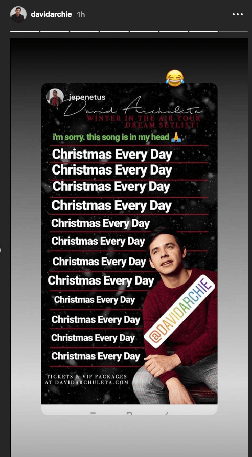 Love your list too Deb and ‘The River’ would be so good! I guess for me my list would include O Holy Night, Christmas Every Day, Winter In The Air, White Christmas, In The Bleak Midwinter, Mary’s Boy Child, Some Children See Him and anything else David chose to sing (so many to choose from)! A song in Spanish would be wonderful and ‘He Showed Me How’ would be lovely. Still love Pat A Pan, that’s always great and I don’t think there is any doubt that he will be singing ‘Christmas Every Day’. π Fabulous tour coming up!