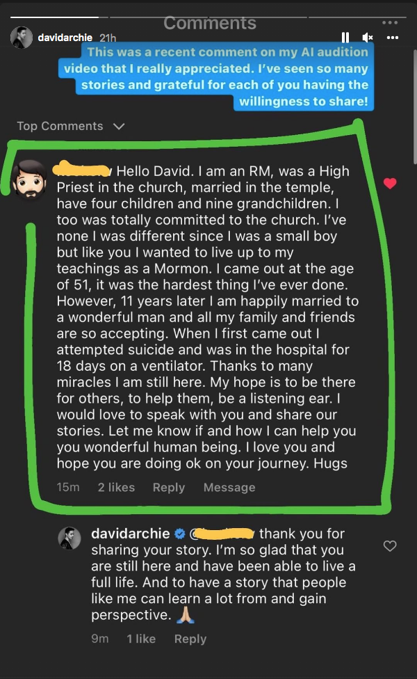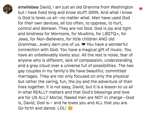 Back in June 2021 David said he wanted folks to have conversations about religion and the LGBTQA+ community. By all accounts (Twitter, comments on his IG) he seems to have accomplished that. Well done, David.