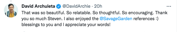 I’m sure most of you visiting here have watched David Archuleta’s 50+-minute Instagram video by now. But if you haven’t, I strongly encourage you to. [TRIGGER WARNING, however: It’s raw, it’s emotional, and he discusses suicidal ideation and trauma.]