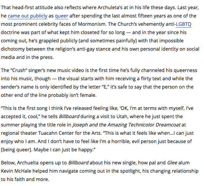 “David Archuleta Talks Dating Guys, New Music & Embracing His Queerness,” Advocate Channel.